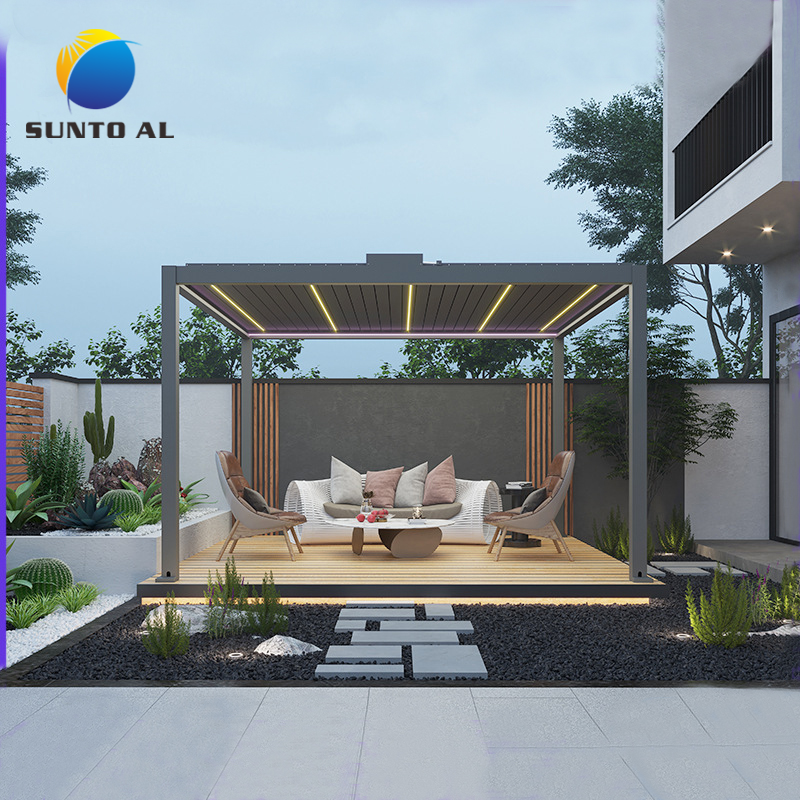 Exterior Backyard Bioclimatique Sunshade Pergola Louvered Gazebo Sandwich Panels