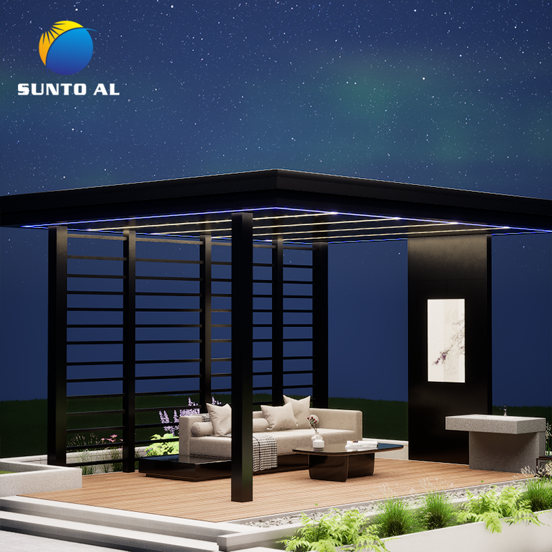 Sunto Outdoor Steel Pergola Gazebo with Aluminium Canopy pergola Waterproof LED light pergola